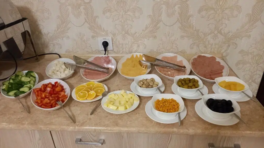 The buffet at Ark Billur Halal Hotel is a varied breakfast that is available from 07:00 to 10:00. Guests can enjoy a wide range of dishes, including cold appetizers, hot dishes, fruits, pastries, yogurts and more. Regardless of your preferences, you will definitely find something to taste at our Buffet breakfast.